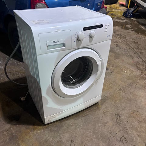 Vuoden vanha whirlpoolin päältä täytettävä pesukone, moitteettomassa kunnossa. Mukaan 2 mustaa pyykkikoria.