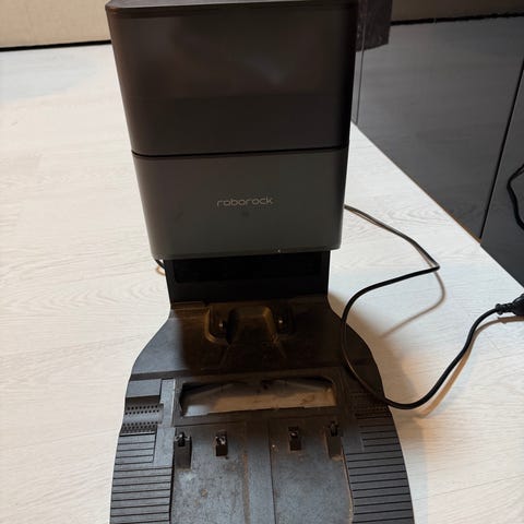 Hyväkuntoinen Roborock S7 ja tyhjennystelakka (aed01hrr). Käyttötunteja on kertynyt 65 tuntia.