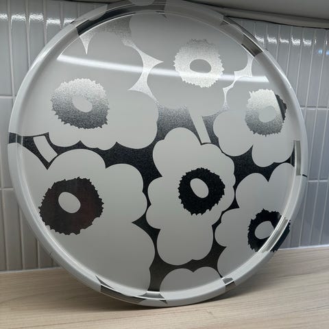 Beige Unikko vaneeritarjotin 31cm läpimitalla. Uusi ja käyttämätön. 31e haku. Postitus ja ToriDiili käy.