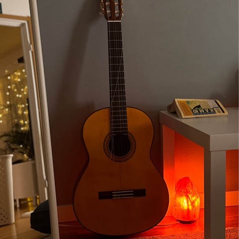 Valkoinen akustinen kitara
