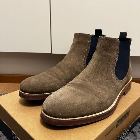 Hyvä kuntoiset, melkein uutta vastaavat tummanruskeat Chelsea varsikengät. Miesten 42 koko. Oil resistant pohjat. Tyylikkäät ja laadukkaat kengät. Itselle liian isot, niin myyntiin.