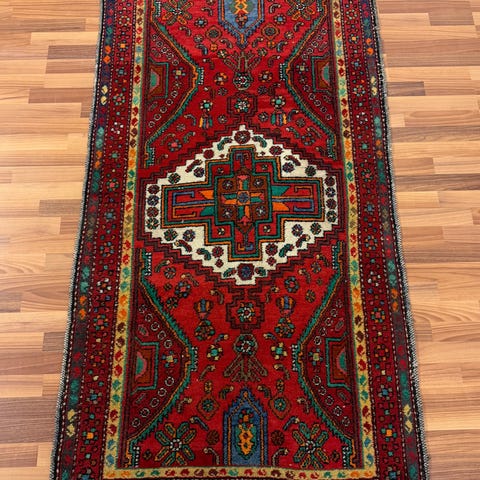 Myynnissä erittäin vanha ja kaunis käsinsolmittu persialainen Hamadan-matto. Maton arvioitu ikä on 50–70 vuotta, ja sitä voidaan pitää puoliksi antiikkisena.