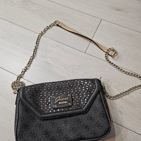 Myydään musta Guess laukku. Mitat 13x22x4cm. Nouto tai postitus. Maksu käteinen tai mobilepay.
