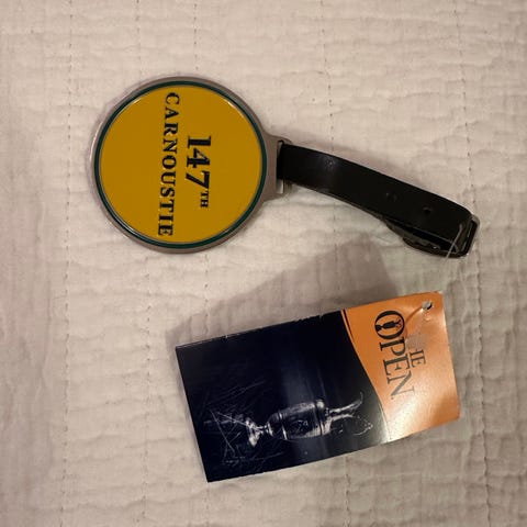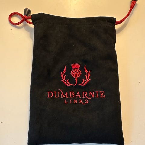Kingsbarns lahjasetti sisältää pussukan merkkareille, tiille, palloille ja griinihaarukalle.