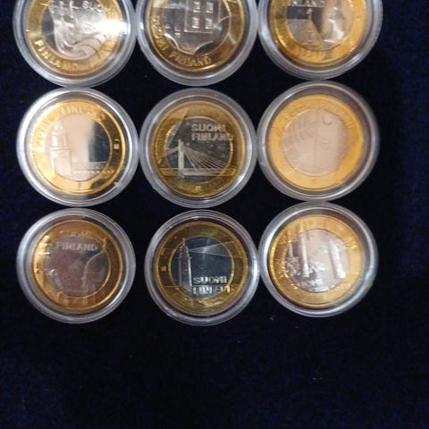 Täydellinen yhdeksän kolikon sarja. Sinulle postikulut 2.7e tai nouto. Tulevat kapseleissa