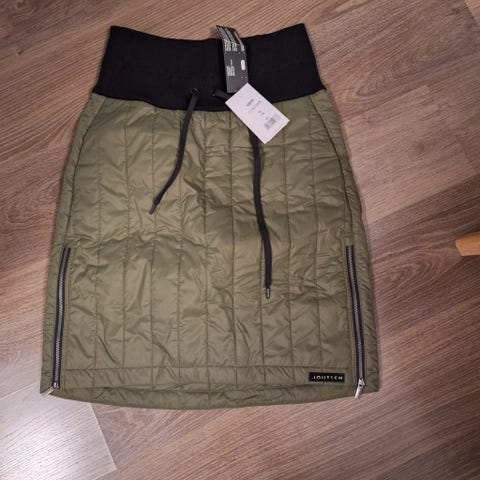 Uusi hame, laput paikoillaan. Kangas hylkii kevyttä sadetta ja lunta. Voi käyttää housujen päällä tai sellaisenaan. Käännettävä vyötärö jossa kiristysmahdollisuus. Tosi kevyt ja laadukas!