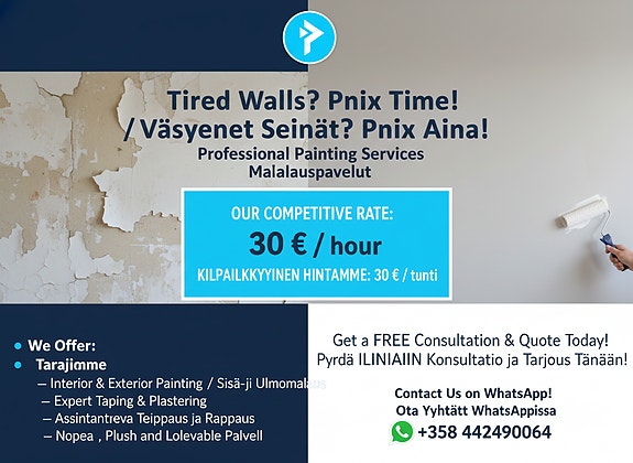 Pnix Cleaning Services (Siivouspalvelut) Comprehensive and flexible cleaning solutions, from regular upkeep to deep cleaning. Trust us for a spotless result every time. Competitive rate from 29 €/hour.