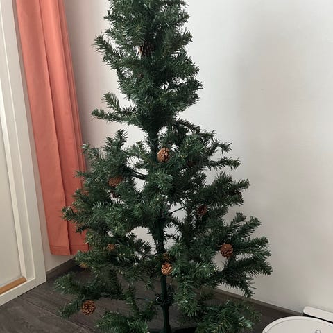 Valkoinen muovikuusi korkeus 150 cm. Kuljetus järjestyy tarvittaessa Vaasassa.
