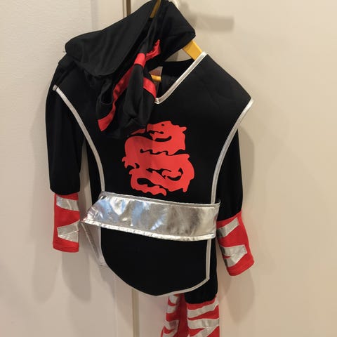 Myydään kuvan musta ninja-asu roolileikkeihin tai naamiaisiin. Koko 7-8-vuotiaalle sopiva.
