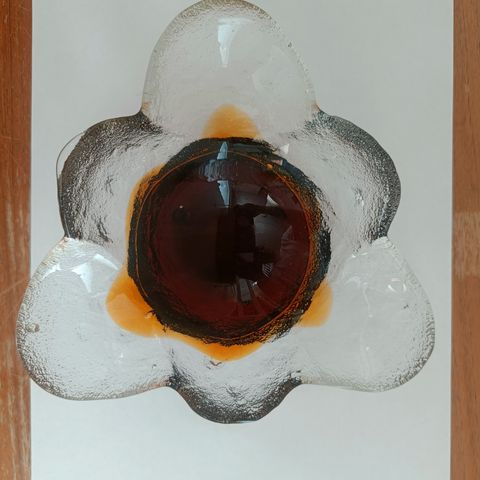 Humppilan lasin lasikulho. Korkeus n. 14,5 cm ja halkaisija yläreunasta n. 20,5 cm. Pohjan halkaisija n. 8 cm.