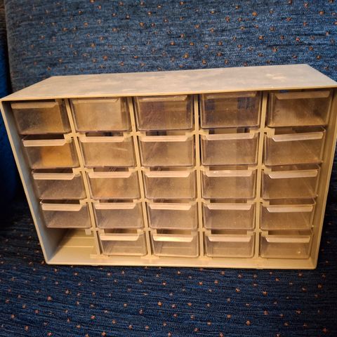 Ehjä muovilokerikkoja. Olleet käytössä helmien varastoinnissa.