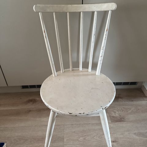 Myydään puinen valkoiseksi maalattu pinnatuoli. Tukeva istua. Eläimetön koti. Voin kuljettaa Kouvolan alueella.