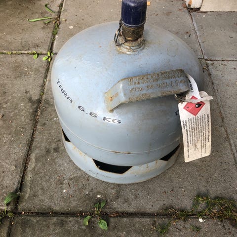 Teräksinen nestekaasupullo 11 kg täynnä.
