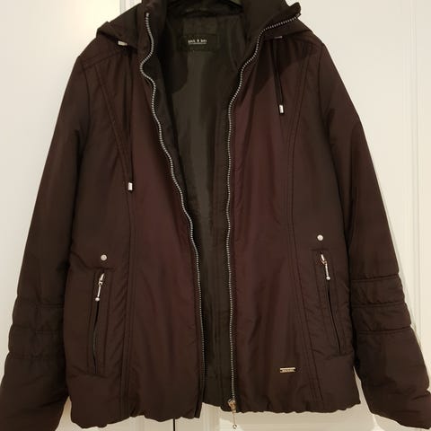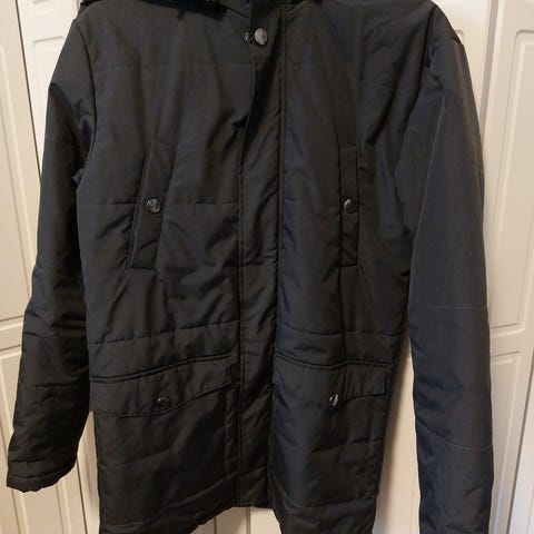 Kevyt, kiva ja lämmin musta kevytvanutakki. Koko m. Toimivat vetoketjut taskuissa. Ei huppua.