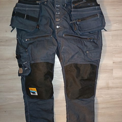 Housut on juuri pestyt ja oikean puolen polvivahvikkeessa on muutama pieni vaalea jälki, mitkä ei lähteny normipesussa. Näkyvät viimeisessä kuvassa. Muuten uuden veroiset.
