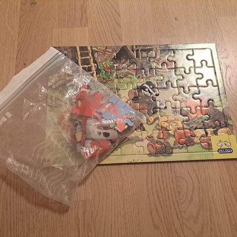 Myydään palapelit. Salama palapeli 24 palaa, isot palat. Tässä hyvä kunto, kelpaa vaikka pukin konttiin! Ryhmä Hau 15 palaa, pientä kulumaa. Toinen salama kaupan päälle, kulumaa ja laatikko vähän kärsinyt