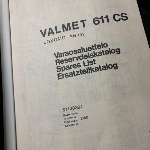 Valmet 411 D moottori varaosaluettelo