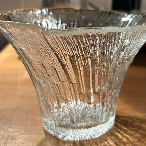 Muurlan maljakko kork.13/16cm, halk. 12cm, hyväkuntoinen , paksu lasi