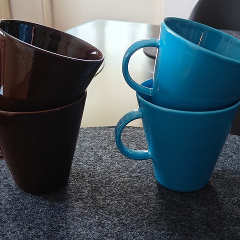Myydään koko-sarjan kahvikuppeja ja asetteja. Väri pistaasi. Kupin vetoisuus 2.5 dl ja asetin halkaisija 16.7 cm.