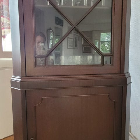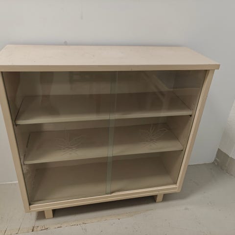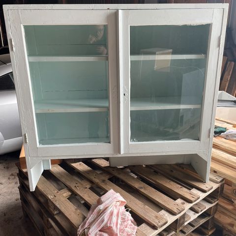 Hyvä vitriini kolmella lasihyllyllä. Merkki Isabella. Maalattu Vintage Tea.