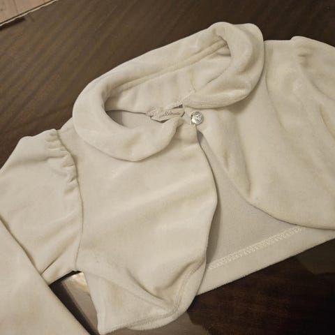 Liila bolero, valkoinen bolero helmillä ja pinkki bolero kukilla. Koko 110cm.