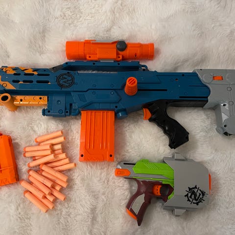 Nerf Ultra lasten leikkipyssy. Toimii paristoilla, jotka kuuluu mukaan. Lisäksi Nerf-liivi, johon saa kiinnitettyä vaikka lisäammuksia. Sekä ase että liivi erittäin vähän käytetty, kuin uusi.