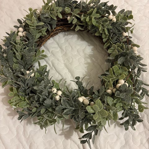 Näyttävä kranssi, koristeena mm. puuvillankukka, eucalyptys oksat, kävyt. Halkaisija 55cm.
