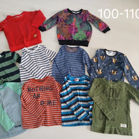 Myydään poikien paitoja koko 104, haisulipqita on 110 ja punainen ruutupaika vastaa kokoa 110. Jalkapallopaita on paljetti jossa värit vaihtuvat.