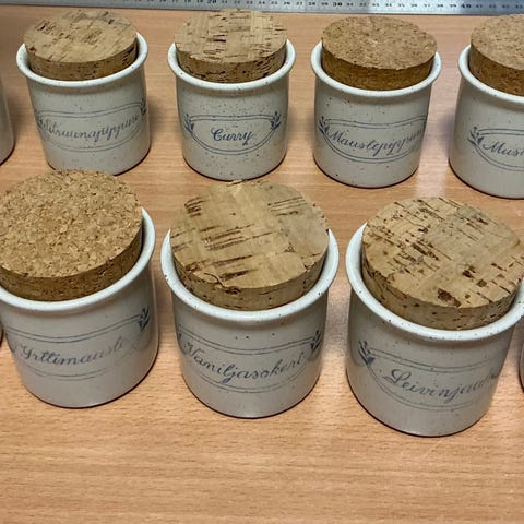 Myyntiin Pentik Halla -sarjan purnukat. Pienet maustepurkit 7kpl (suola, leivinjauhe, vaniljasokeri, kaneli, mustapippuri, sitruunapippuri, oregano) 10€/kpl tai 50€ kaikki. Keskikokoinen Teetä -purnukka 15€. Kahvi-purnukka MYYTY. Saa myös tarjota koko setistä. Koiratalous. Nopea nouto etusijalla, postitus ostajan vastuulla (pakkaan kyllä hyvin).