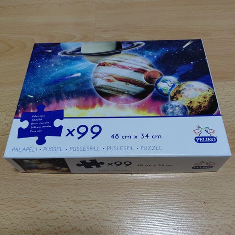 Avaruuspalapeli ja juliste. Kerran koottu. Laatikko kärsinyt avatessa, palapeli kunnossa.
