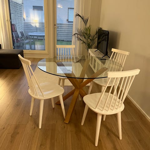 Kaksi kpl, toisesta tuolista irtoaa osia (katso kuva), ja vuosien varrella niitä on yritetty liimata takaisin yhteen. Hinta 5 €/kpl. Vain nouto Arkadiankadulta.