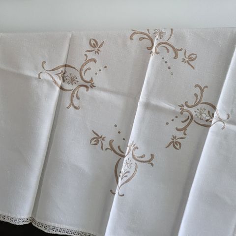 Kaunis käsintehty pöytäliina. Reikäommellen ja ilmeisesti nyplätty keskuskuvio. Koko 25x48 cm. Postitus tai nouto Kauppakeskus Karisma.