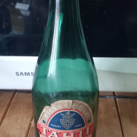 Vintage olutpulloja, Grolsch pulloja 5 kpl, väri vihreä, korkeus 24 cm ja Fischer pullo 1 kpl, väri ruskea, korkeus 25 cm. Pullot ovat hyväkuntoisia. Hinta yhteensä 10 euroa sekä lähetyskulut.