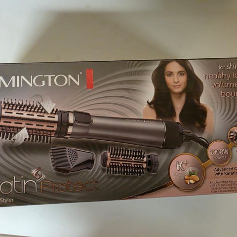 Remington Keratin Therapy hiustenmuotoilija sisältää pyörivät harjat hiusten muotoiluun.