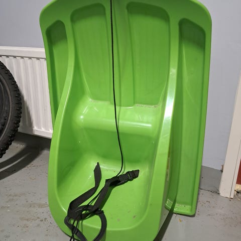 Vihreä vauvapulkka. Käytönjälkeä löytyy, ks. kuvat.