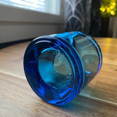 Iittala koriste-esineet, jotka on valmistettu lasista. Tuotteet ovat sinisen sävyisiä ja sopivat koristekäyttöön.