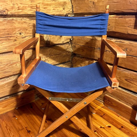Myydään ohjaajan kokoontaitettava tuoli. Kangas hyvässä kunnossa, väri merensininen. Saa hyvin kokoon taitettua.