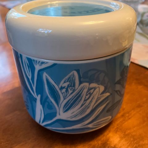 Myydään Heini Riitahuhdan Arabialle suunnittelema kauniin keltainen purkki. Korkeus kannen kanssa 11 cm, suuaukon halkaisija 11 cm.