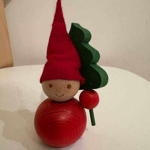 Myydään vanha, ehjä, hyväkuntoinen Aarikan hiihtäjätonttu.