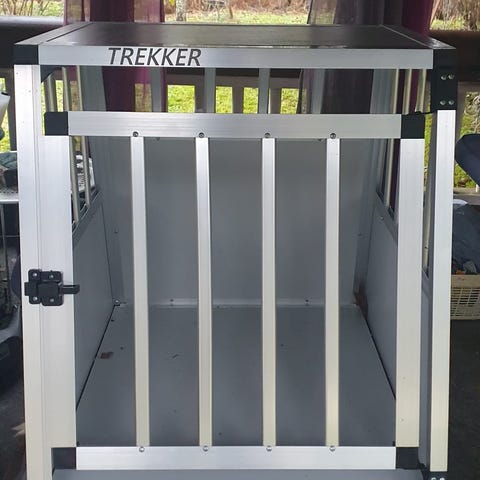 Trekker kuljetuskoppi, mitat 91 cm (pituus) x 65 cm (leveys) x 69 cm (korkeus). Valmistettu metallista ja muovipohjasta. Sopii eläinten kuljetukseen autossa tai muussa kuljetuksessa.