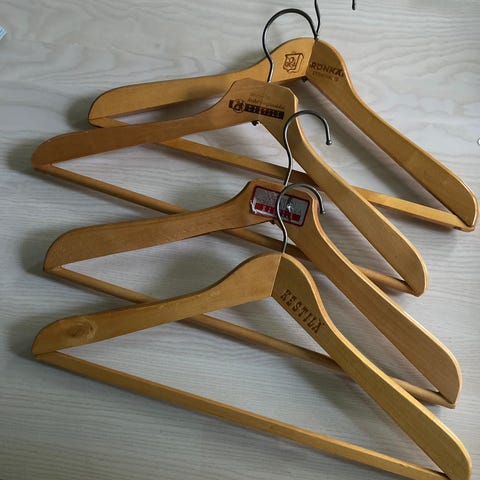 Myyn kuvan henkarit. Tukevat ja hyväkuntoiset vaikka ovatkin retroja. Jokaisessa eri Kestilän logo. Löytyvät Vaasasta. Voin postittaa kuluja vastaan.
