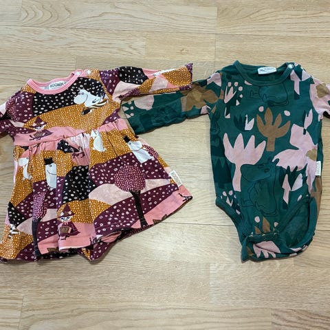 Muumi body, housut ja hattu 62cm. Pesty hajusteettomalla.