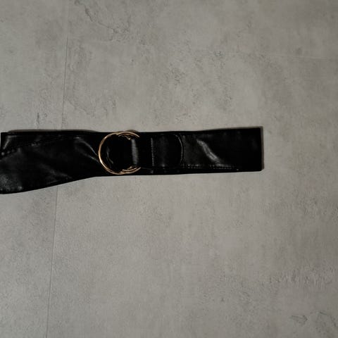 Hopeinen tekonahkainen patellavyö. Ei kokomerkintää, sanoisin että S-M. Kokonaismitta 102 cm. Portaattomasti säädettävä. Erittäin siistissä kunnossa, ei mitään vikaa.