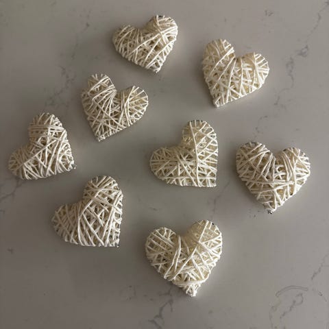 Myytävänä Ib Laursen, Stillenat -sarjan ihanat mangopuiset sydämet valkoisilla pisteillä x 2 kpl juuttinaruripustuksella.