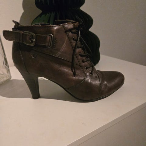 -mustat kiiltonahkakengät, hopea koristeineen rusetti, korko 8 cm, korko musta mutta kimallepintainen, vähän käytetty, koko 35,