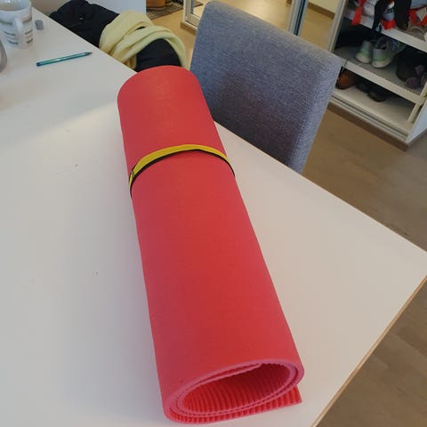 Nike Just Do It harmaa/pinkki jumppa-alusta. Mitta leveys 61cm ja pituus 174vm. Katso kuva, vähän irvistää yhdestä kohtaa. Muuten ehjä.