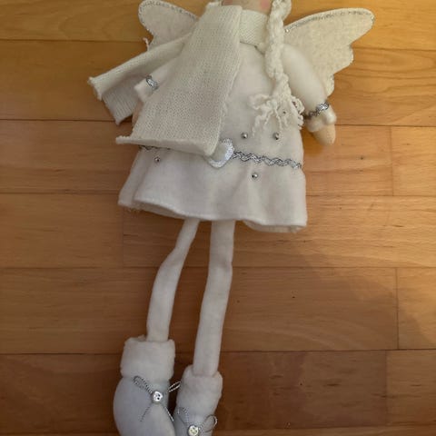 Joulu Enkelihahmo sininen tähti huivi koristeena. Enkelihahmolla on sininen huivi, jossa on tähtikuvioita. Soveltuu joulukoristeeksi.