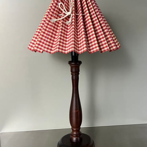 Koko: kork (varjostimen kanssa) 70cm. Jalan korkeus 56cm (eli hiukan korkeampi kuin useimmat pöytälamput). Jalan halk 15cm.