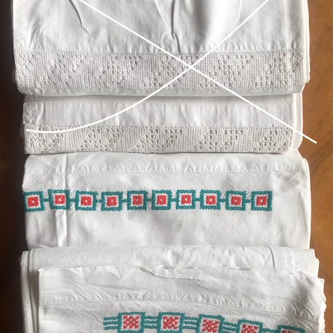Vanhat lakanatx3, kahdessa pitsireuna, yhdessä pieni kirjailu