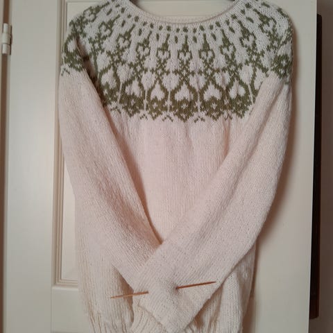 Myyn kuvan setin, jossa on L-koon Strömsö-neule ja siihen sopiva palmikkopipo tupsulla. Molemmat merinovillaa ja käyttämättömiä.